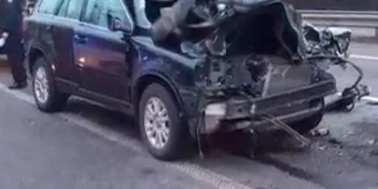 18 марта в Киеве на житомирской трассе, возле Чайки произошло ДТП: автомобиль "Вольво" на большой скорости влетел в фуру, остановившуюся на светофоре.