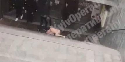 В центре Киева голый мужчина гулял по улицам, а потом спрыгнул с ограждения в подземный ТЦ.