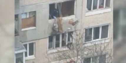 Свисал из окна на седьмом этаже: спасение мужчины в Киеве попало на видео