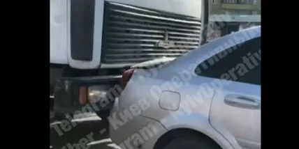 В столице грузовик МАЗ КП "Благоустройство" таранил автомобиль Chevrolet. По словам свидетелей инцидента, сначала у кинотеатра "Флоренция" водитель выехал на встречную полосу, проехал светофор на красный свет, а потом принялся "атаковать" Chevrolet.