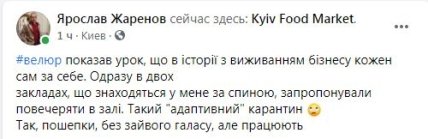 По его словам, сразу в двух ресторанах фуд-хола Kyiv Food Market ему предложили поужинать в зале.