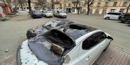 В Одессе обрушился фасад одноименного кинотеатра, его осколки упали на стоящие под ним автомобили, значительно повредив их.