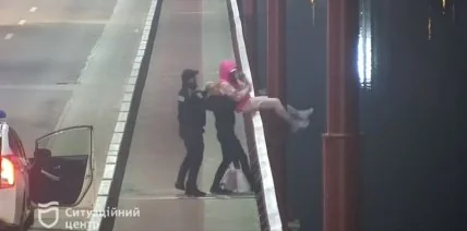 В Днепре девушка собиралась спрыгнуть с моста, однако ее спасли патрульные полицейские, буквально затащив ее обратно на мост.