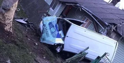 На Прикарпатье полицейский микроавтобус врезался в жилой дом (фото)