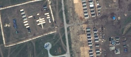 Фото ниже было сделано на полигоне Опук в Крыму 15 апреля. На нем видны корпус российских войск, полевой госпиталь и боевой вертолет.