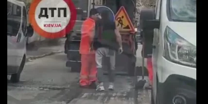 Появилось видео момента нападения на работников дорожной службы в Киеве в среду, 21 апреля, в результате чего огнестрельное ранение получил один из коммунальщиков.