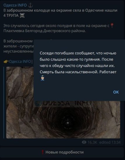 В воскресенье, 25 апреля, в одном из заброшенных колодцев возле Плахтиевки (Одесская область) нашли тела трех мужчин и женщины.