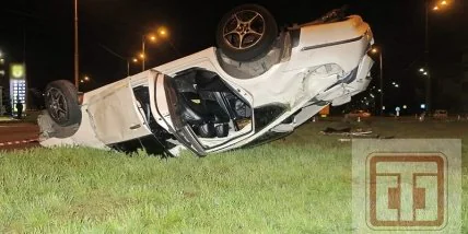 В ночь на понедельник, 26 апреля, на левом берегу Киева на ул. Гагарина произошло опрокидывание "Nissan".