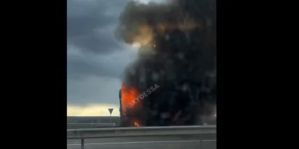 В понедельник, 26 апреля, на трассе Одесса-Киев произошло огненное ЧП – загорелась фура.
