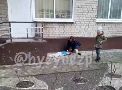 Также канал опубликовал кадры, снятые очевидцами с места ЧП, в том числе и видео, на котором видно, что ребенок лежит на бетонной плитке, где ему придерживает голову девушка.