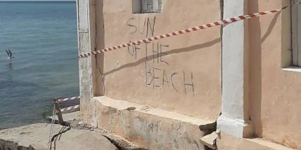 Российские оккупанты бесконтрольно и незаконно добывают песок в Каламитском заливе, расположенном у берега аннексированного Крыма, из-за чего одно из строений практически снесло в Черное море.
