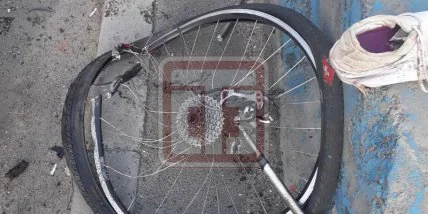 Следователи устанавливают все детали инцидента и ищут очевидцев. Как видно на фото, удар был такой силы, что с велосипедиста слетела обувь, а колеса его транспортного средства погнуло.