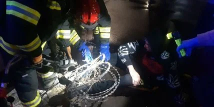 В Киеве, около 12 ночи произошло ЧП: на улице Метрологической, 1, в Голосеевском районе мужчина запутался в колючей проволоке.