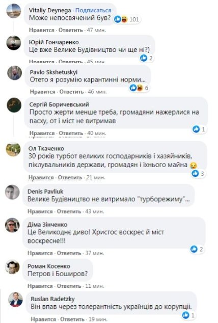 "Враги с воздуха разбомбили мост по трассе Львов-Луцк. Ой нет, он сам упал", - написал он.