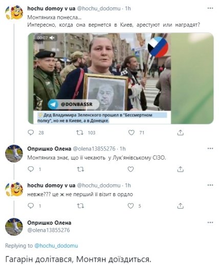 "Вроде адекватная баба была, а потом понесло", "Хорошо бубочку подставила", "Гагарин долетался, Монтян доездится", - среди прочего, пишут украинцы.