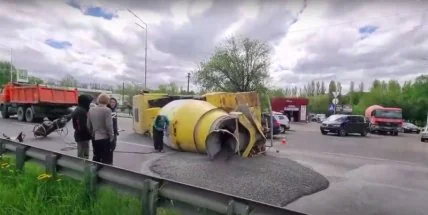 В Киеве на проспекте Леся Курбаса перевернулась бетономешалка в сети показали видео момента и последствий ДТП.