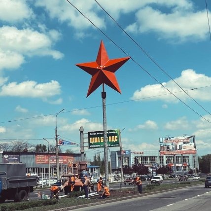 Сегодня, 13 мая, на въезде в Донецк, временно оккупированный войсками РФ и сепаратистами, установили огромную красную звезду.