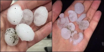 Сообщается также о множестве разбитых градом авто, которые оставили на ночь на улице вне укрытия.