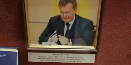 Виктору Януковичу досталось еще больше. Сотрудники музея вывесили на стену его фотографию с московской пресс-конференции (проходила в 2017 году. – Авт.). На снимке запечатлен курьезный момент, когда Янукович ломает ручку. Пикантности ситуации добавляет тот факт, что в подписи к фото не забыли указать, что Виктор Федорович был лишен президентского звания специальным законом.