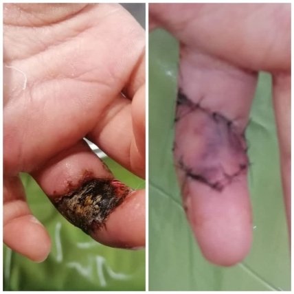 Снимки сопроводил пояснением: "Укус гадюки очень редко приводит к смерти. В то же время, если вас укусила змея, стоит сразу обратиться за медицинской помощью, ведь укус может иметь тяжелые проявления и серьезные последствия. Особенно опасными они являются для детей, пожилых людей и людей с пониженным иммунитетом. Выполнена пластика полнослойным лоскутом".