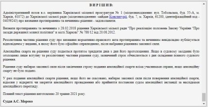 Также суд обязал мэрию Харькова официально обнародовать это решение после его вступления в законную силу.