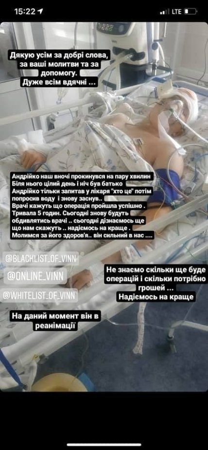 "Тарасюк Андрей, 13 лет, золотой, добрый, отзывчивый ребенок, хороший друг, спортсмен. Андрей находится в очень тяжелом состоянии в реанимации. Очень надеемся и верим, что Андрей преодолеет все, семье желаем сил и терпения. Надеемся, очень надеемся на справедливое наказание виновницы. Если кто-то имеет возможность, присоединяйтесь к помощи для Андрея молитвами, средствами (карта сестры на фото), кто чем может" – такой призыв опубликовала в Фейсбуке Ирина Доценко.