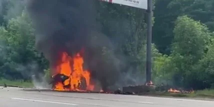 Сообщается, что инцидент произошел между улицей Алексеевкой и ТЦ ЛОСКом. Из-за столкновения с билбордом автомобиль, в котором находился человек, взорвался и загорелся.