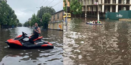Как пишет издание Житомир.info, изобретательные горожане нашли способ передвигаться по городу: одни сели на водные скутеры, а другие достали надувные матрасы. Фото и видео затопленных улиц и необычного транспорта распространяли в социальных сетях.