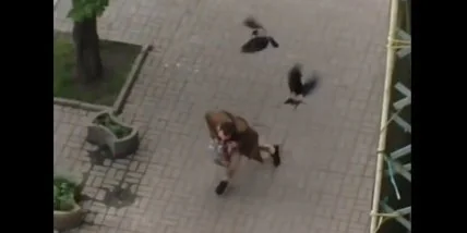 На видео видно, как одна из ворон налетает на мужчину и пытается клюнуть его в темечко. После этого, к этой вороне присоединилась еще одна. И сотворить вышеописанное они пытались уже вдвоем. Мужчина, ставший жертвой ворон, начал убегать от них. При этом делал это он, пригнувшись.
