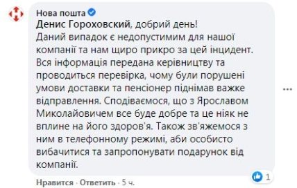 UPD: "Новая почта" извинилась за случившееся, назвав случай недопустимым.
