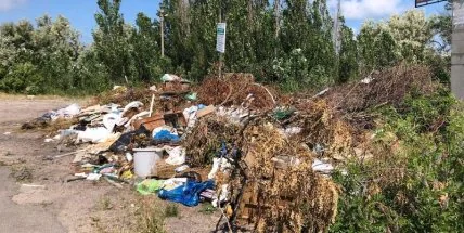 На Бердянской косе недалеко от пляжа собралась огромная свалка.