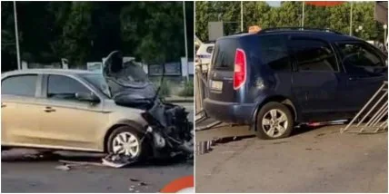 В Киеве такси влетело "в лоб" другой машине и улетело в МАФ, оба водителя в больнице