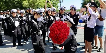 Выпускник Одесского университета МВД сделал предложение девушке прямо во время церемонии.