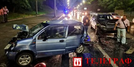 В воскресенье, 4 июля, поздно вечером на бульваре Дружбы Народов в Киеве, произошла авария с участием трех машин - Subaru, Daewoo Matiz и Chery Tiggo, в результате чего женщина с двумя детьми попали в больницу.