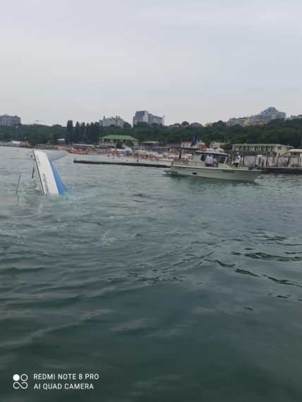 В Одессе вечером в воскресенье, 4 июля, возле пляжа "Ланжерон" капитан яхты во время открытия парусной регаты не справился с управлением и перевернулся.