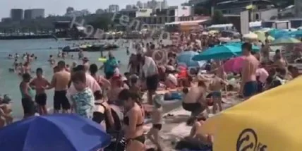 "Аншлаг на курорте Одессы. "Пляж Ланжерон", - комментирует женщина, которая сделала видеофрагмент.