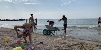 Поэтому даже отдыхающие присоединились к очистке пляжа. С помощью детских ведер, лопаток и тачек собирают медуз вдоль берега. Для борьбы с существами на пляж даже пригнали экскаватор. Закопали кучу свежесобранных медуз, но через час рядом лежало столько же.