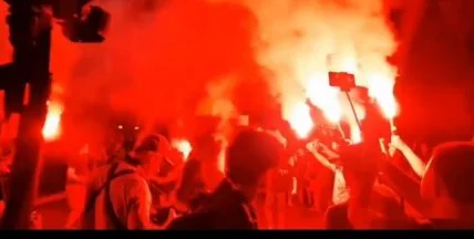 На видео видно, как участники акции под музыку жгут файеры, а их празднование снимают представители СМИ.