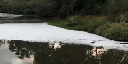 В Киеве покрылась белой пеной река Сырец, неизвестные слили в воду химикаты.