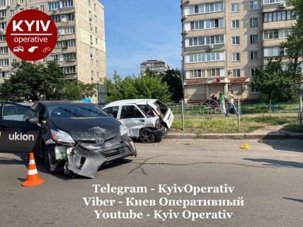 В Оболонском районе Киева случилась масштабная авария по вине таксиста.