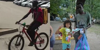 В Харькове жители города организовали помощь афроукраинцу, который сам воспитывает дочь. На днях в Телеграм каналах города распространилась информация о том, что у курьера Glovo Бубакара украли велосипед и он вынужден работать на транспорте дочери.