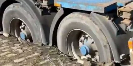 На окраине Одессы произошло необычное дорожно-транспортное происшествие: колёса фуры застряли в асфальте.