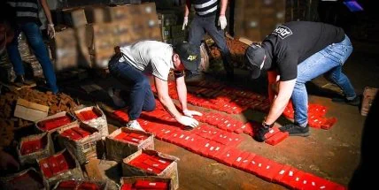 Отмечается, что наркотики были спрятаны в муляжах кирпича. Всего было изъято 1159 брикетов с героином.