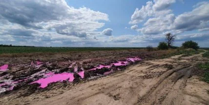 В пятницу, 23 июля, в Ровенской области на одном из полей сотрудниками Госэкоинспекции были обнаружены лужи ярко розовой жидкости.