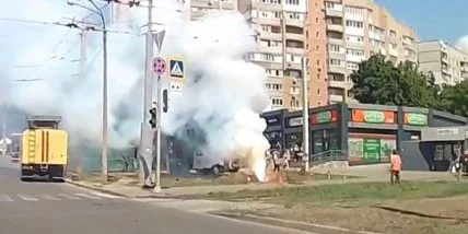 О возгорании, которое произошло возле пешеходной дорожки на оживленном перекрестке улиц Гвардейцев Широнинцев и Героев Труда, и последующем столбе дыма сообщает Status Quo.