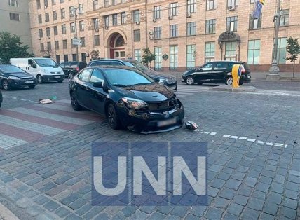 В Киеве на Европейской площади водитель военного грузовика "Урал" протаранил три автомобиля.
