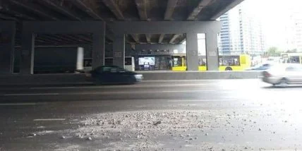 В Киеве части моста падают прямо на дорогу: появились фото