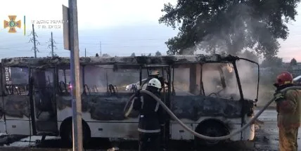 В Деснянском районе Киева вечером в четверг, 5 августа, полностью сгорела пассажирская маршрутка. Из-за пожара пострадал водитель.
