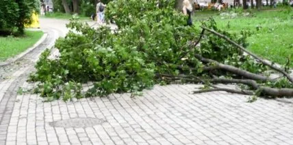 Повалено 20 больших деревьев, которыми повреждены три легковых автомобиля, торговый киоск и травмированы четыре человека.