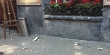 Куски штукатурки упали прямо на плечо прохожему.